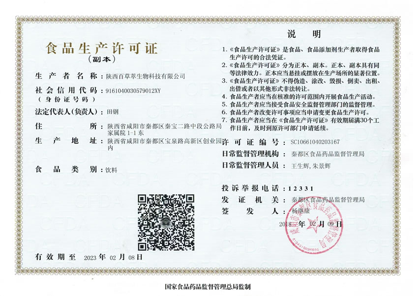 本公司現(xiàn)已與多所科研院緊密合作,公司擁有配套完整的提取、分離、萃取、柱層析、濃縮干燥等設(shè)備和技術(shù),具有豐富的生產(chǎn)天然植物提取物的經(jīng)驗(yàn)和嚴(yán)格的質(zhì)量控制體系。陜西百草萃生物科技有限公司為廣大消費(fèi)著和客戶提供安全、健康、品質(zhì)高、能效強(qiáng)的營(yíng)養(yǎng)健康品,主營(yíng)產(chǎn)品包括:國(guó)食健字鋅硒寶、鋅硒寶、欣寶兒童鋅硒寶、復(fù)合鋅硒片、復(fù)合蛋白鋅、千凈顆粒、蛋白乳鐵片、瑪咖復(fù)合片等、廠家占地五十余畝,廠家建筑面積4000余m2,內(nèi)設(shè)生產(chǎn)車間、質(zhì)量控制室、產(chǎn)品檢測(cè)中心、陰涼倉(cāng)庫(kù)、..